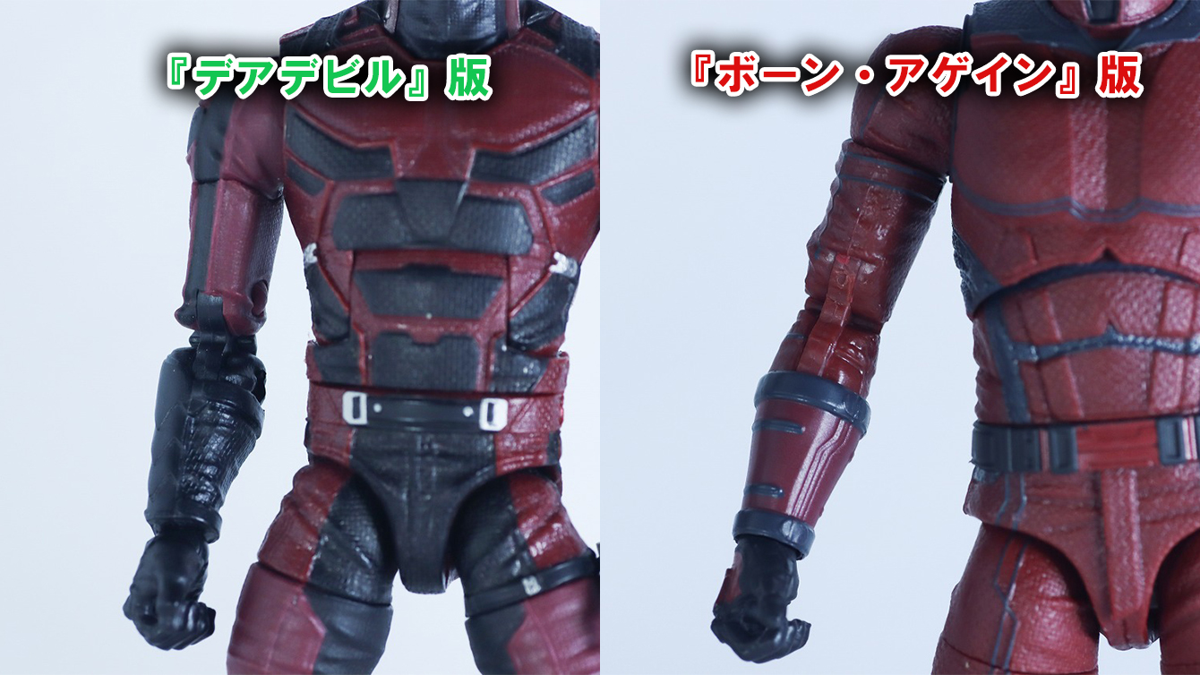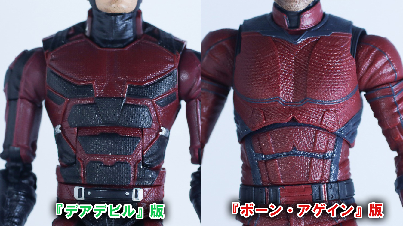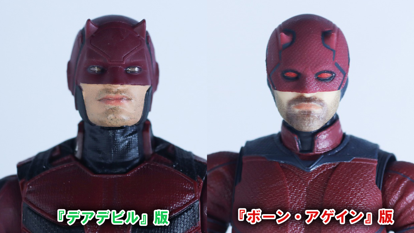 マーベルレジェンドのデアデビル(『デアデビル』)と比較。Netflix制作版のデアデビルですね。発売してからだいぶたつので、スタイルなども大きく異なります。